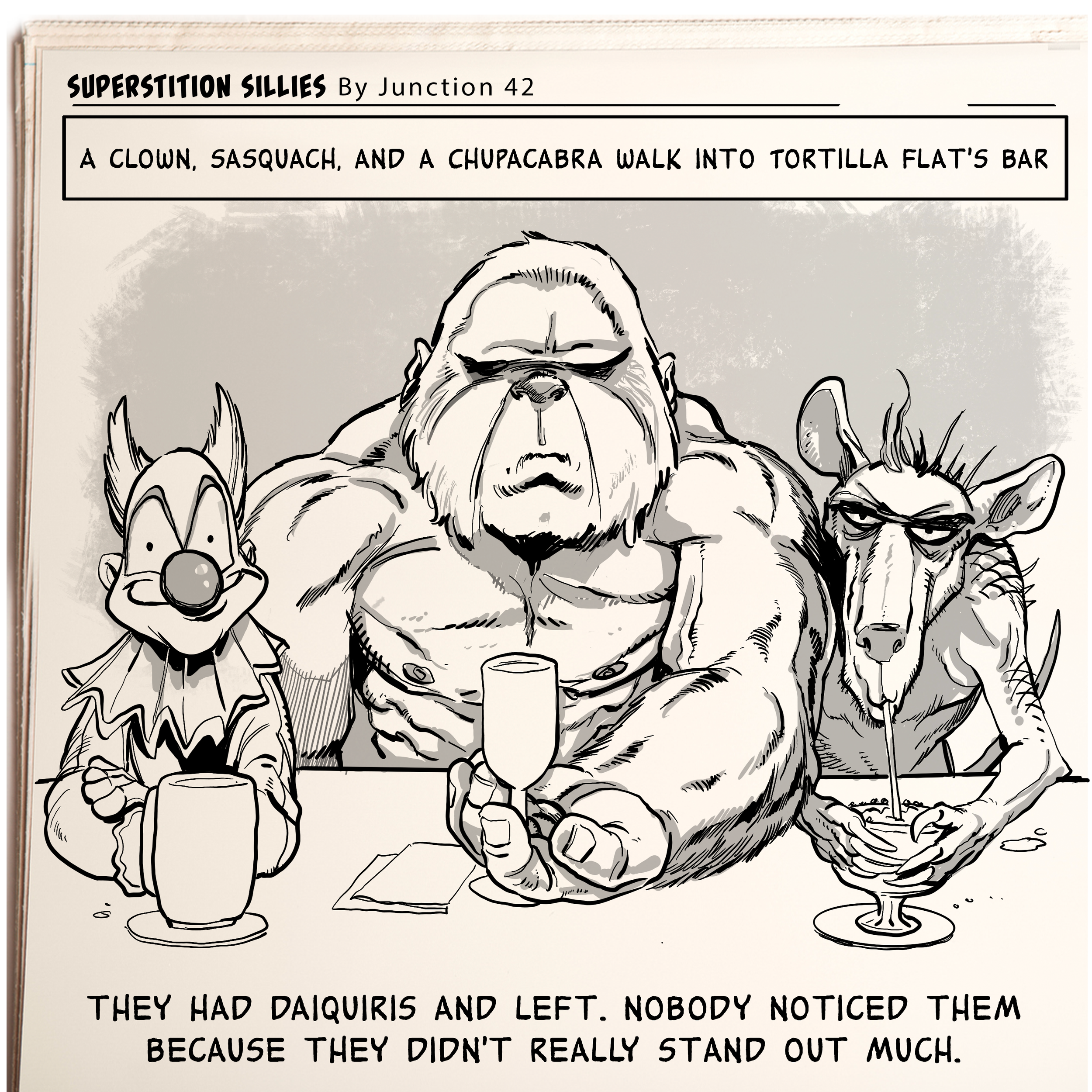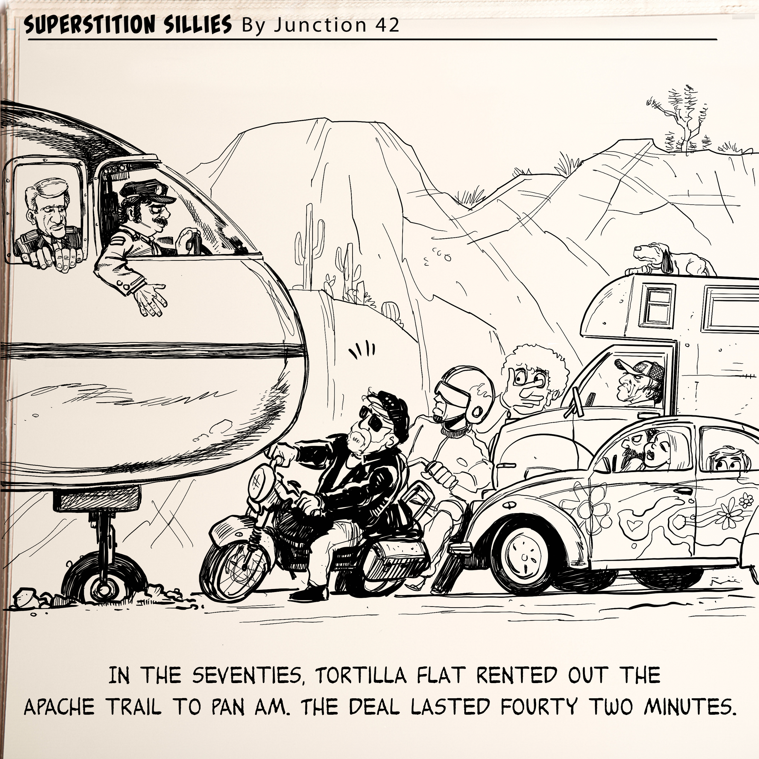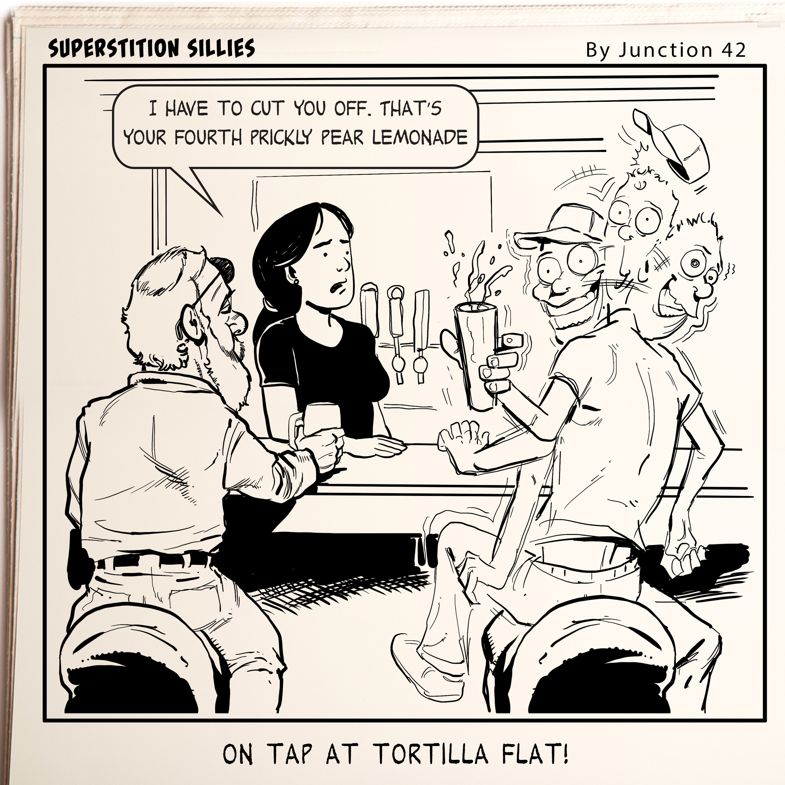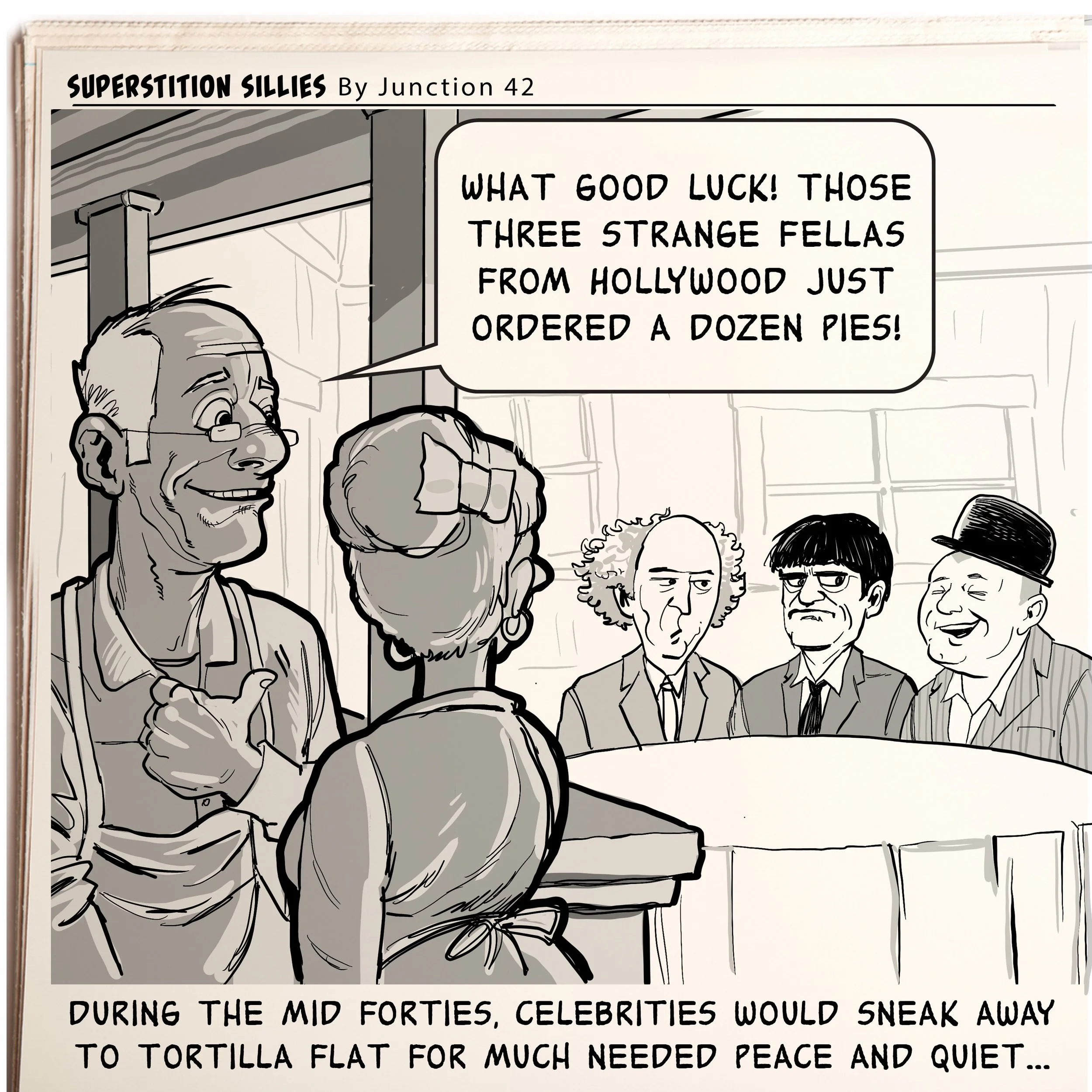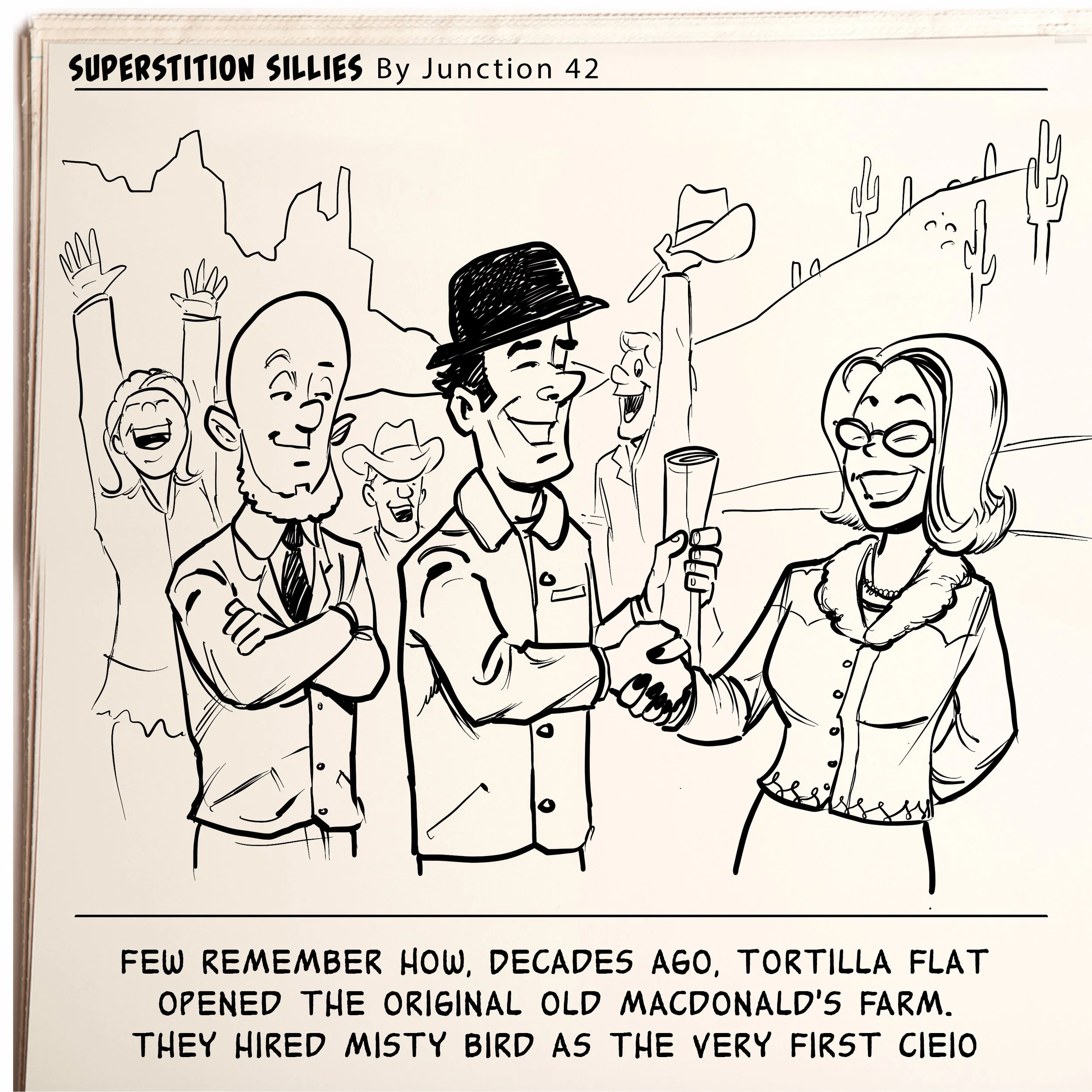 ILLUSTRATION Public Figure and Celebrity Likeness Editorial and Publication WEEKLY COMIC STRIPS for Tortilla Flat, Arizona