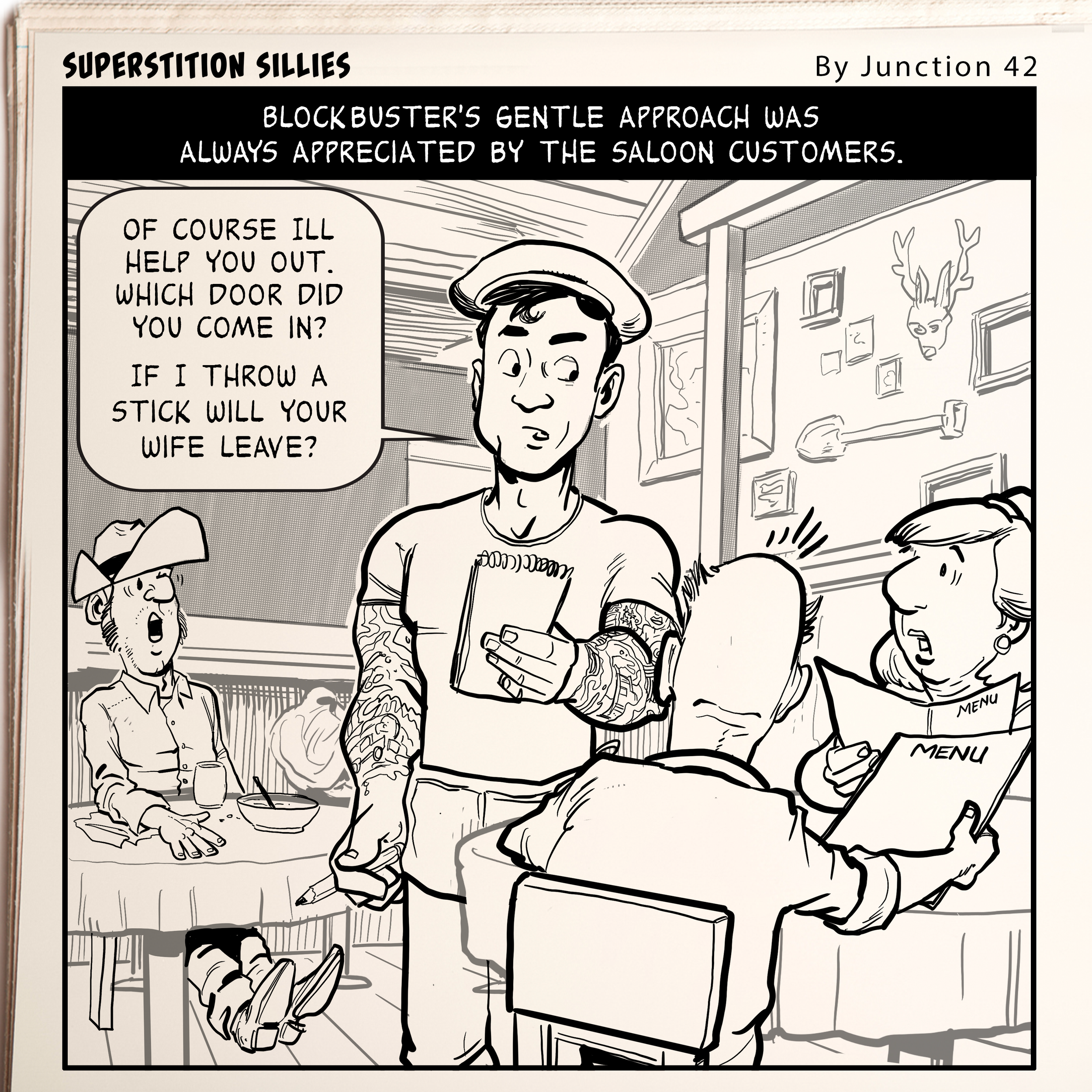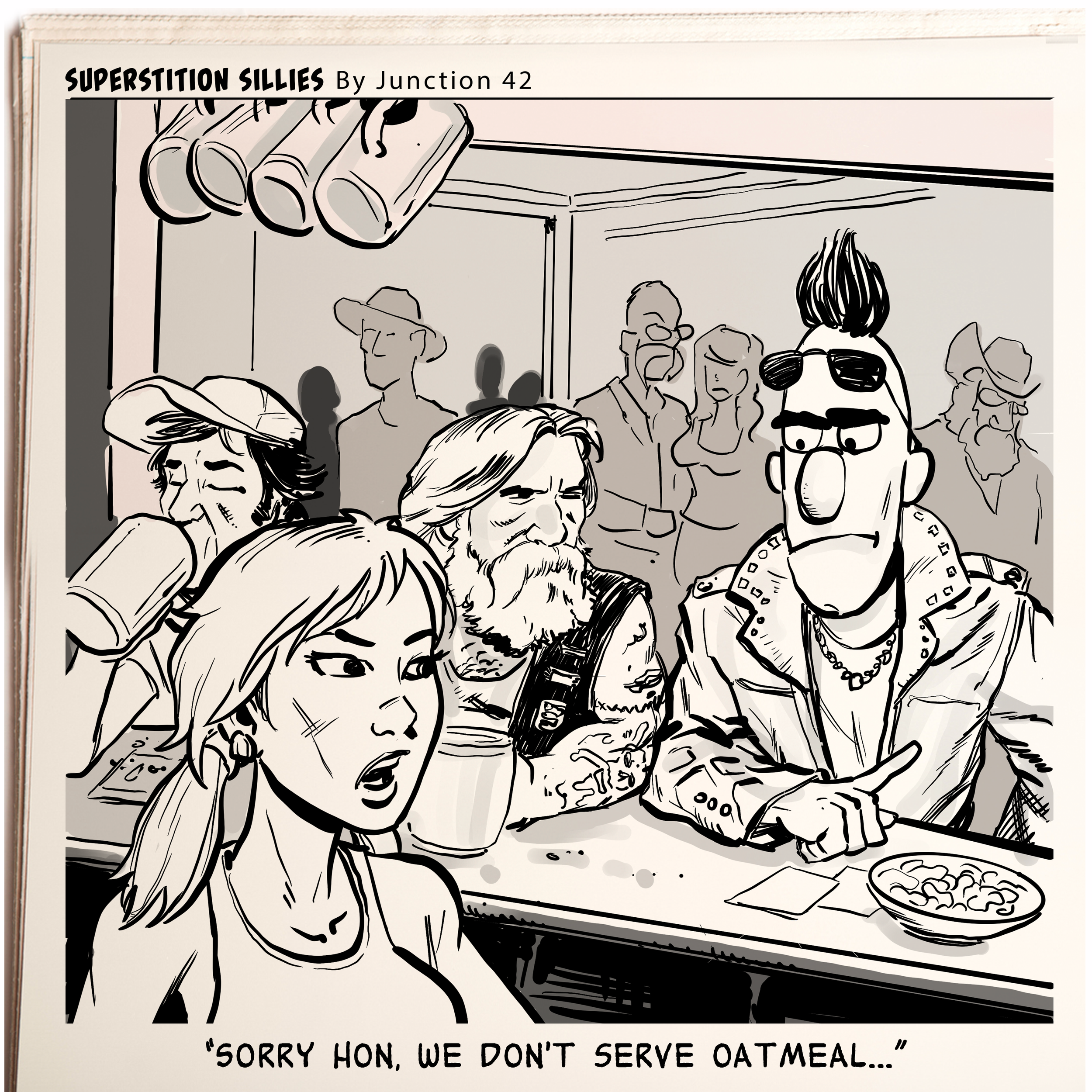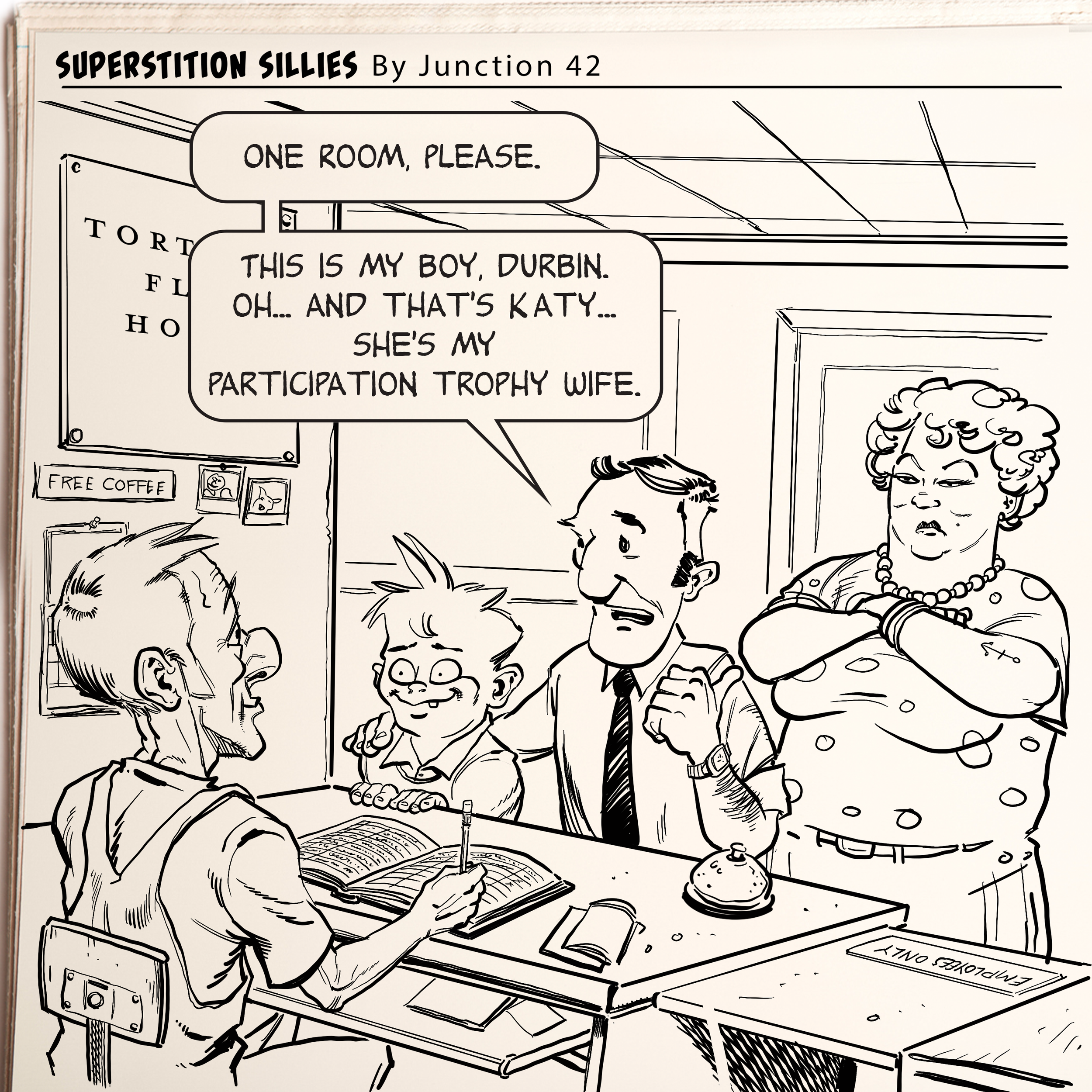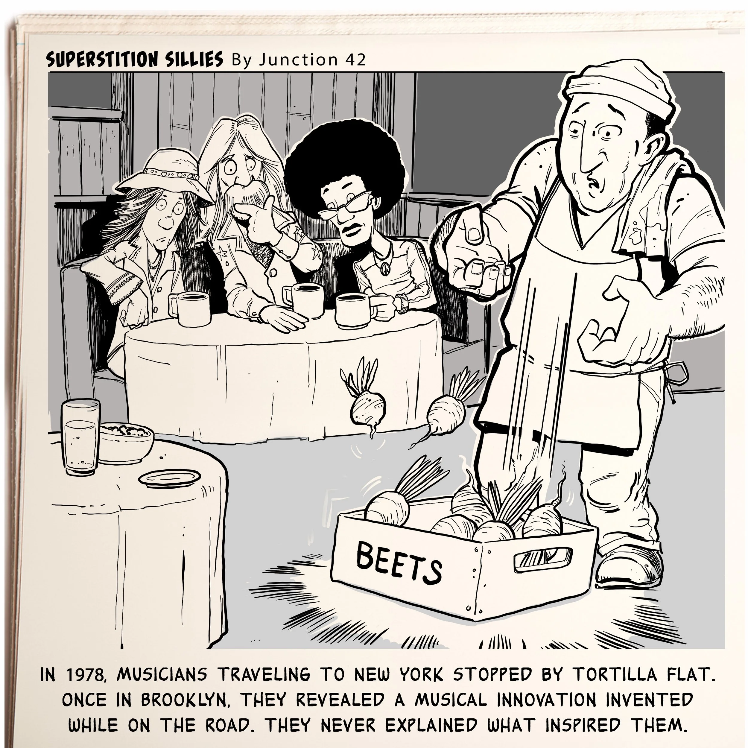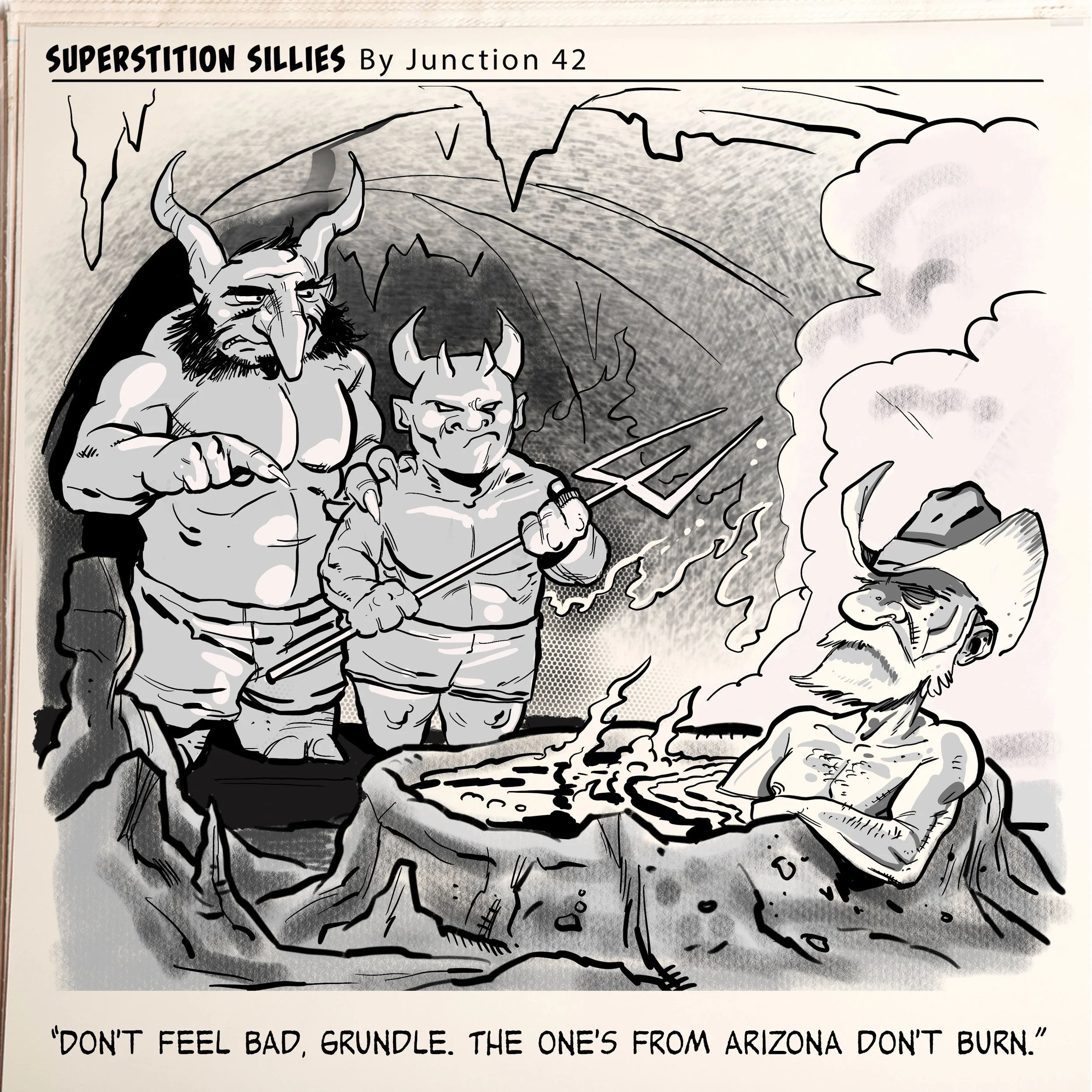 ILLUSTRATION Public Figure and Celebrity Likeness Editorial and Publication WEEKLY COMIC STRIPS for Tortilla Flat, Arizona